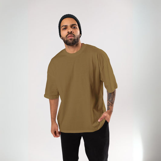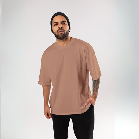 Plain/Solid : Biscuit Brown Oversized T-Shirt for Men