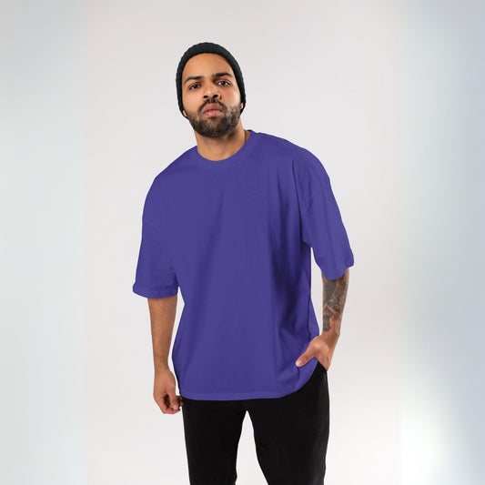 Plain/Solid : Blue Oversized T-Shirt for Men