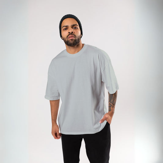 Plain/Solid: Light Grey Oversized 200 GSM Round Neck T-Shirt Unisex