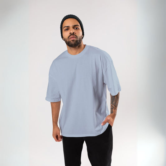 Plain/Solid : Powder Blue Oversized T-Shirt for Men