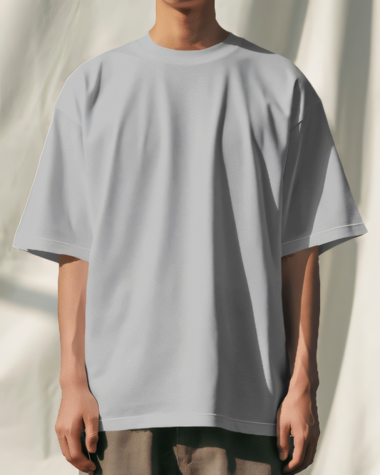 Plain/Solid: Light Grey Oversized 200 GSM Round Neck T-Shirt Unisex