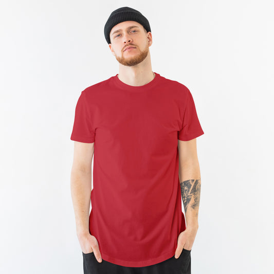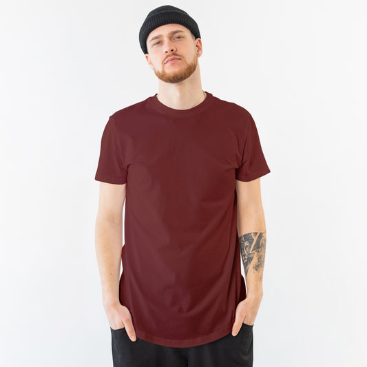 Plain/Solid: Maroon Round Neck T-Shirt Men