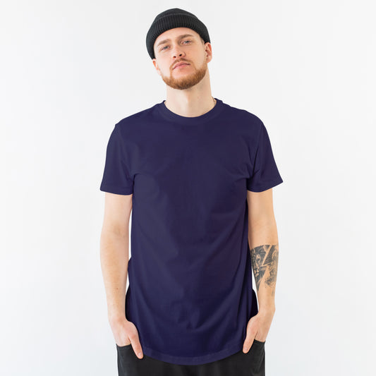 Plain/Solid: Navy Blue Round Neck T-Shirt Men