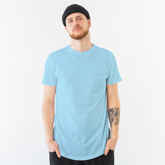 Plain/Solid: Ocean Blue Round Neck T-Shirt Men