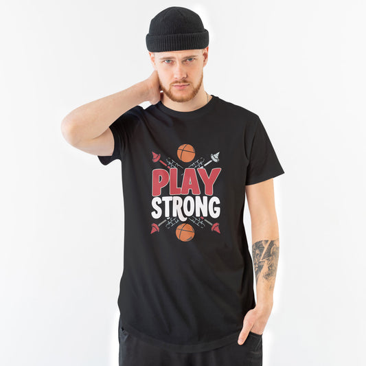 Men's Play Strong Basketball Graphic Printed T-shirt