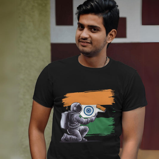 Astronaut Painting India Flag Graphic Printed Oversized Unisex T-shirt