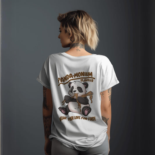 Women's Panda-monium Wear Your Love for Food Graphic Printed Oversized T-shirt