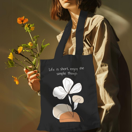Life is Short, Enjoy Simple things Black Canvas Tote Bag