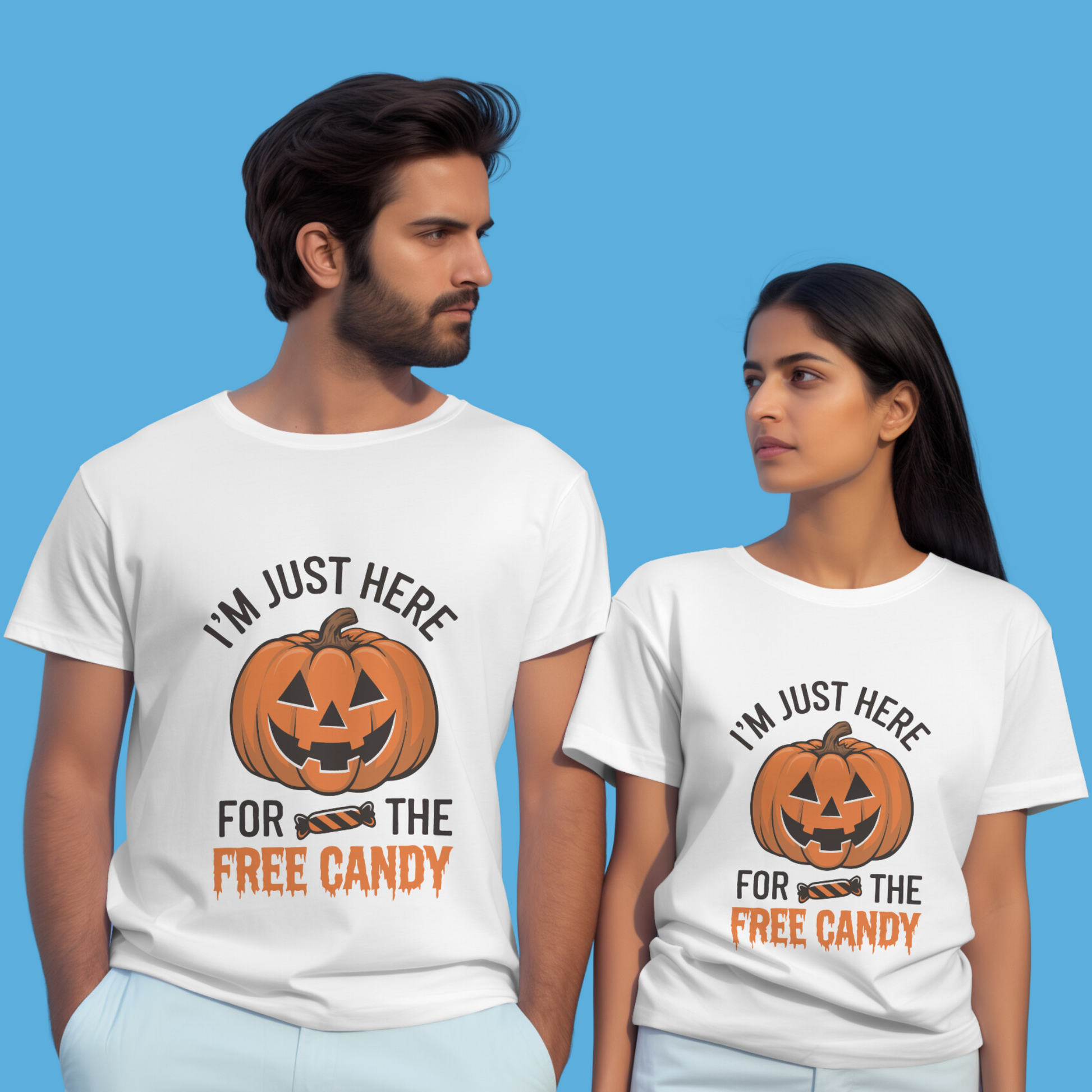 I'm Just Here For The Free Candy Halloween Graphic Printed Unisex T-shirt