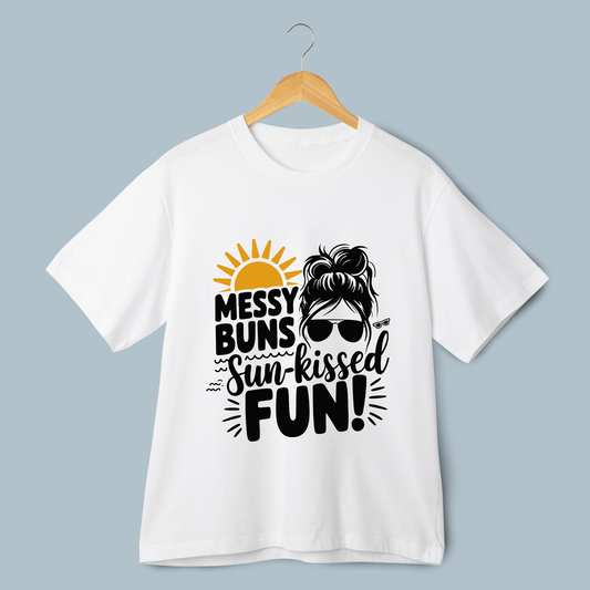 Messy Buns Sun Kissed Fun Graphic Printed Oversized Women's T-shirt